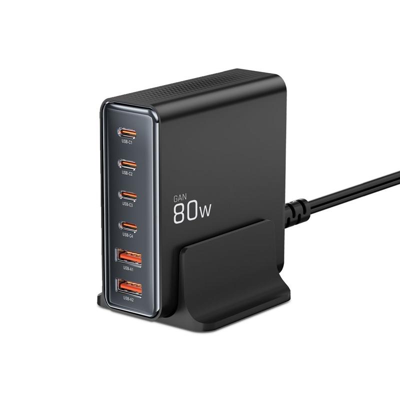 Tech-Protect DC80W GaN 6-porters bordlader med 4x PD USB-C, 2x QC 3.0 USB-A - 80W