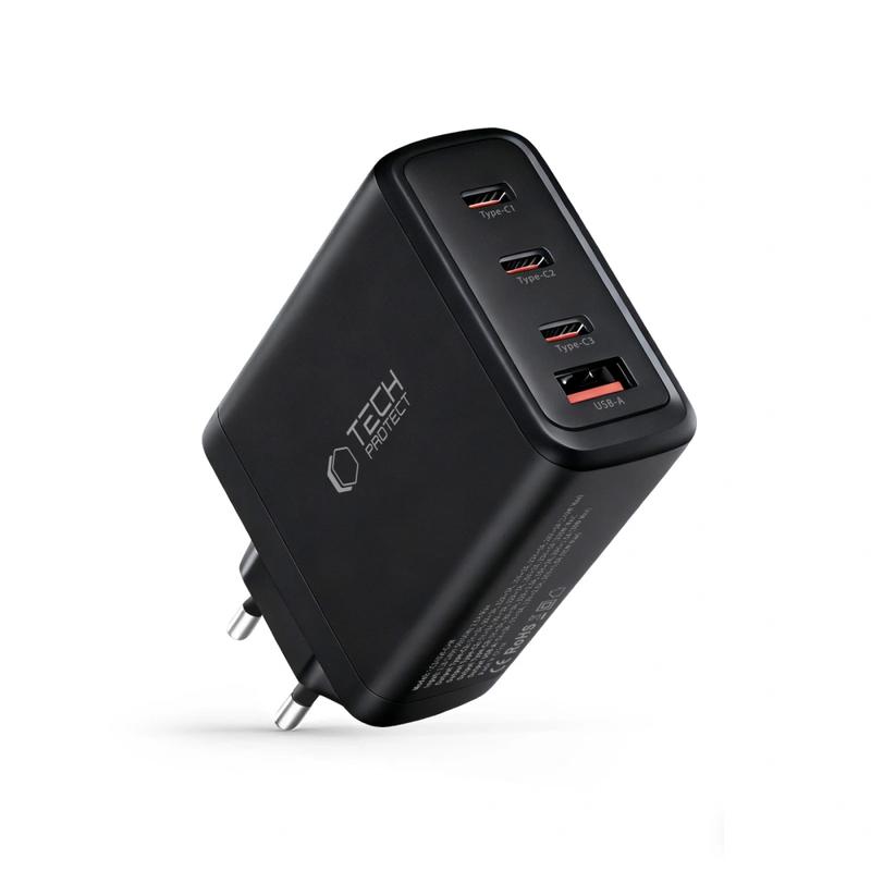Tech-Protect NC140W 4-porters GaN-lader - 3x USB-C, 1x USB-A, 140W hurtiglader med strømforsyning