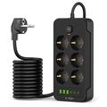 Tech-Protect PC6X6 Strømuttak - 3 USB-A, 3 USB-C, 6 stikkontakter med 200cm kabel