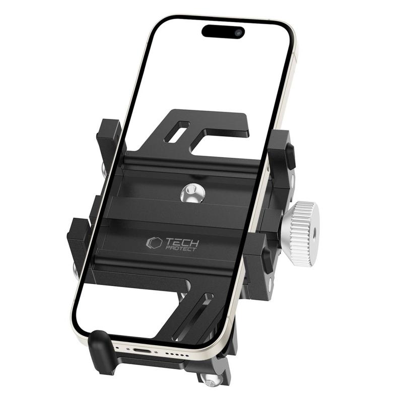 V1 sykkelholder i metall fra Tech-Protect er det beste valget i sitt segment, og tilbyr konstruksjon og funksjonalitet av høy kvalitet. Sykkelholderen er laget av en slitesterk aluminiumslegering, og har et håndtak med tykkere skaft og sklisikre matter som gir et sikkert grep på sykkel- eller motorsykkelstyret. De justerbare kjevene med ampullskruer gir en stiv og sikker passform for telefoner med en bredde på mellom 55 mm og 95 mm. I tillegg er kjevene polstret for å forhindre riper, og holderen kan roteres 360°.