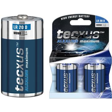 Tecxus LR20/D-batterier 1.5V (mono) - alkaliske manganbatterier med høy kapasitet på 14 500 mAh, lang holdbarhet