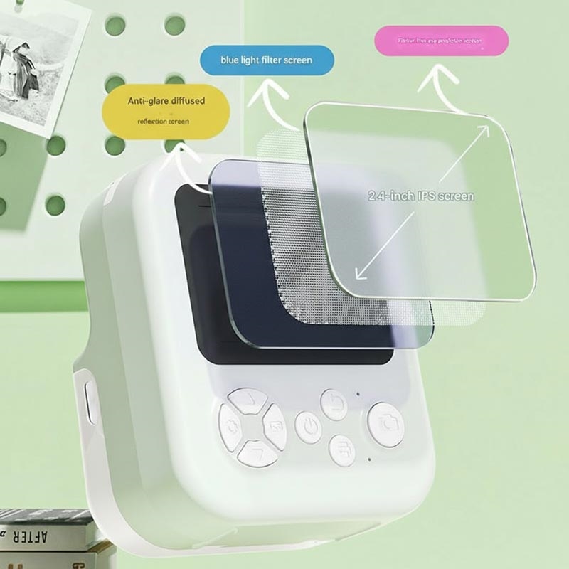 Gjør fotografering av barn morsommere (og mer givende) med P02-kameraet for barn med øyeblikkelig utskrift. Med sitt søte tegneseriedyrdesign og enkle kontroller kan barn ta bilder og skrive dem ut øyeblikkelig ved hjelp av termisk utskrift - uten blekkpatroner, uten rotete påfyllinger, bare raske svart-hvitt-utskrifter som de kan dele, fargelegge eller legge til i en utklippsbok. Den 2,4-tommers IPS-skjermen er designet med øyekomfortfunksjoner som antirefleks og blålysfilter, mens det 180 grader roterbare objektivet gjør det enkelt å ta selfies og kreative vinkler. Legg til filtre, rammer og fotoboks-effekter, og koble deretter til WalkPrint-appen for å redigere, overføre og skrive ut fra en telefon for enda flere kreative muligheter.