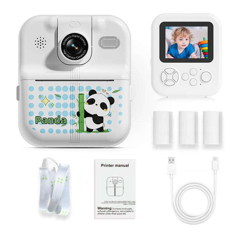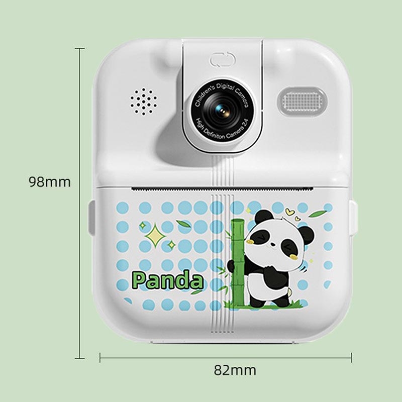 Tegneseriedyrdesign P02 Instant-kamera for barn med 2,4" IPS-skjerm og 180° roterbar linse - WalkPrint-app, USB-C, 1500 mAh, termisk fotoprinter