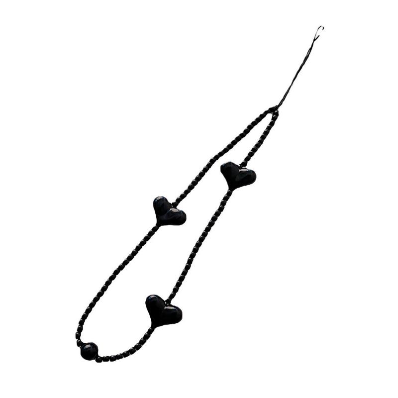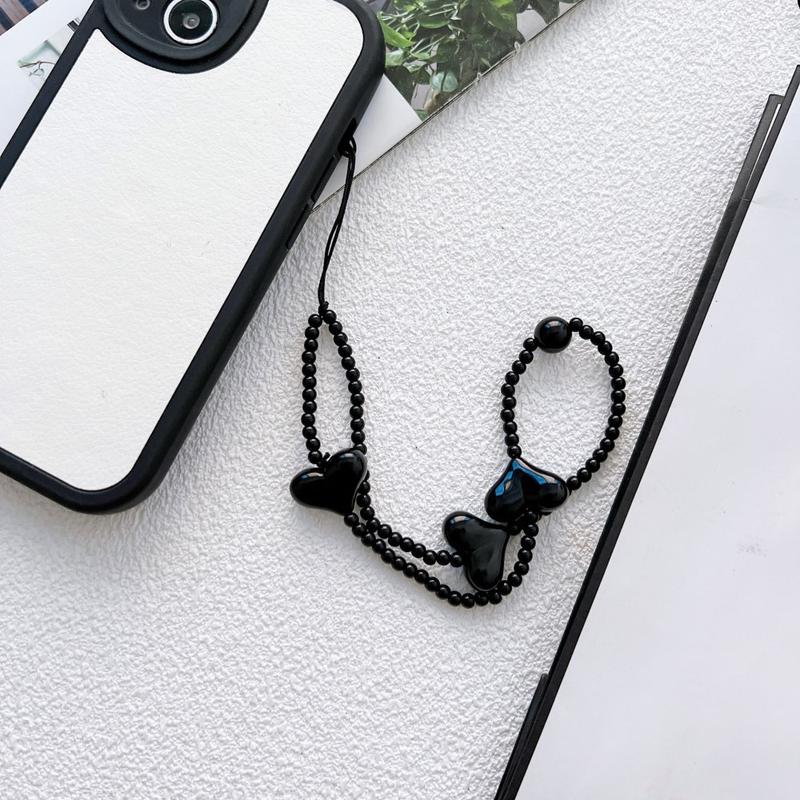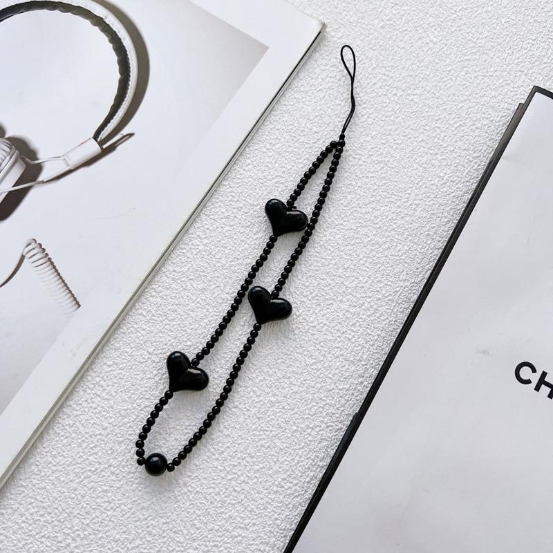 Gi telefonen din et lekent og stilig preg med denne 23.5cm lange telefonremmen med hjerteformede perler. Den er designet med blanke, svarte hjerteformede akrylperler og fungerer både som et dekorativt tilbehør og en praktisk håndleddsrem til daglig bruk.