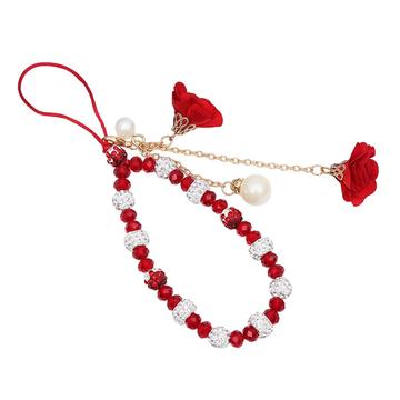 Telefonrem med roseblomst-smykker og krystallperler - rød