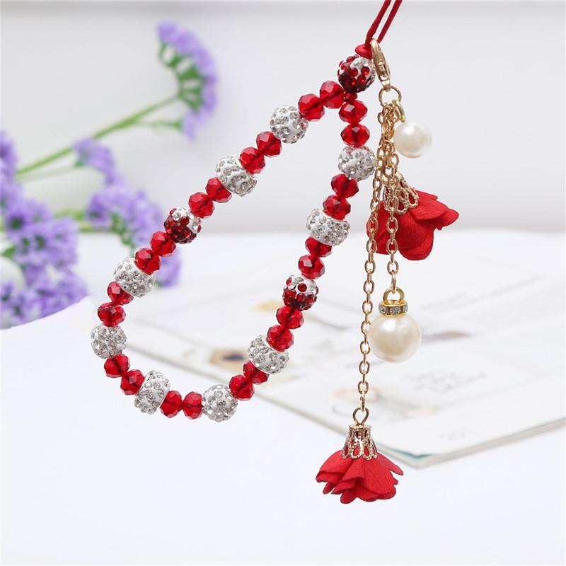 18,7 cm lang telefonrem med krystallperler og rose-smykker - håndleddsrem og håndkjede til mobiltelefon