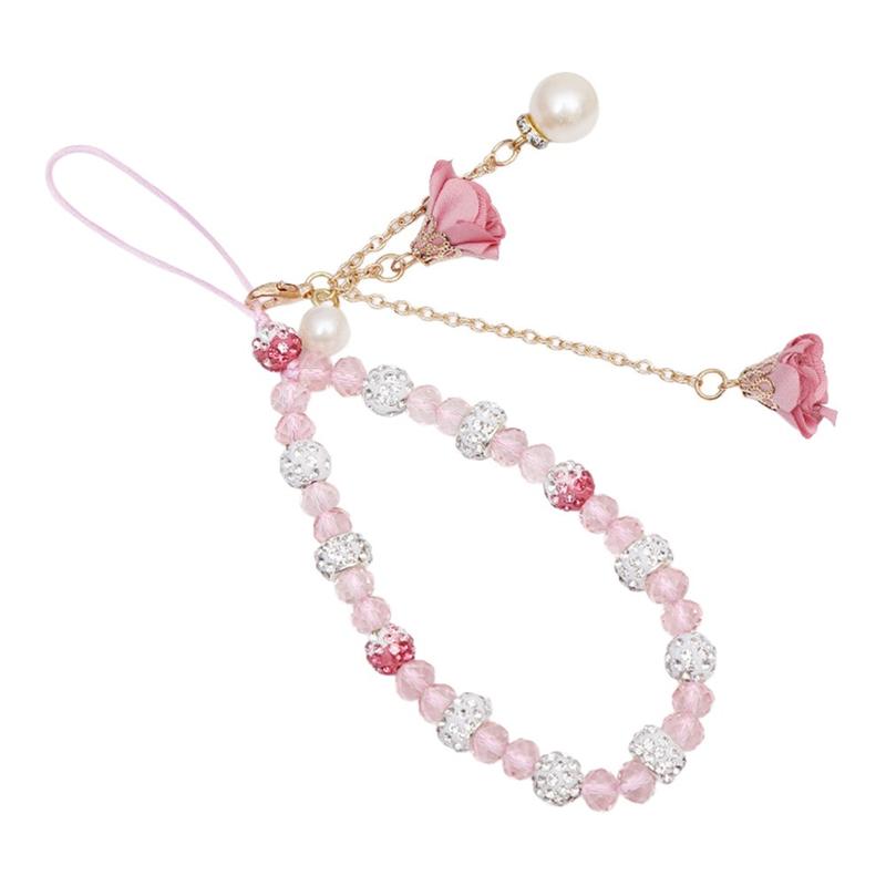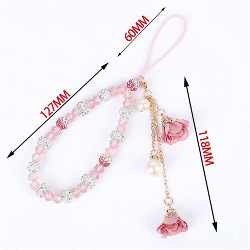 18,7 cm lang telefonrem med krystallperler og rose-smykker - håndleddsrem og håndkjede til mobiltelefon