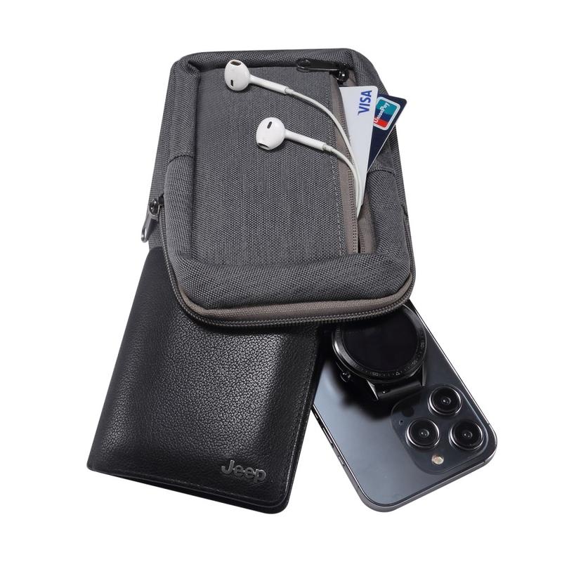 Perfekt for reiser, fotturer eller daglig pendling, med praktisk tilgang til telefonen og ekstra oppbevaringsplass for småting.