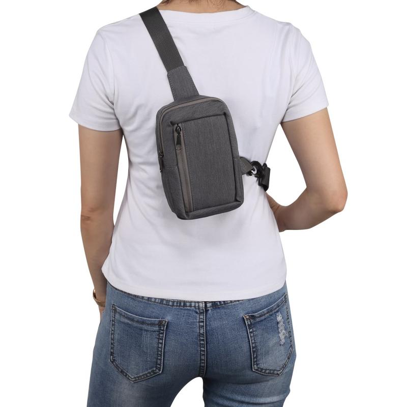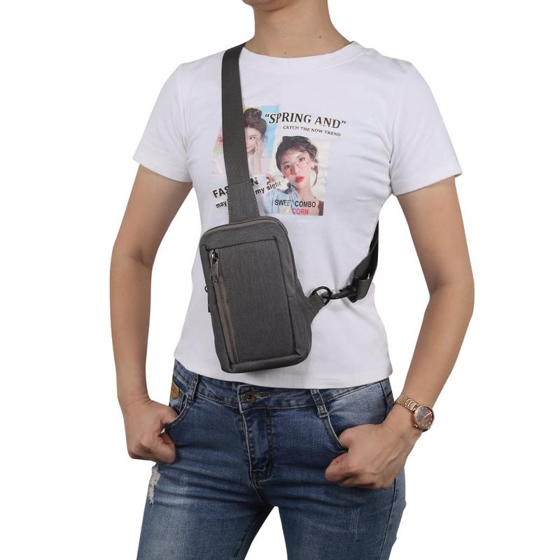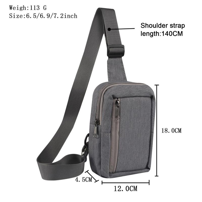 Bær telefonen og andre viktige ting på en enkel måte i denne vanntette bryst- og skuldervesken i nylon. Den er designet for fritidsbruk eller reiser, passer til telefoner på opptil 7,2 tommer og gir beskyttelse og stil. Den justerbare stroppen og den lette vekten sørger for komfort, mens det slitesterke nylonmaterialet beskytter eiendelene dine mot vær og vind.