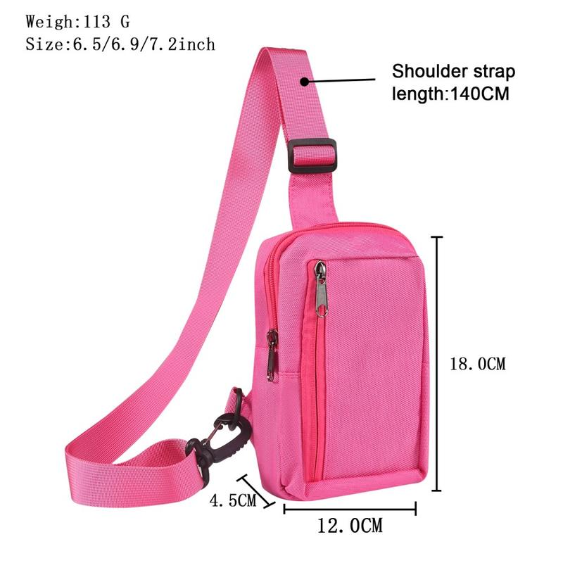 Bær telefonen og andre viktige ting på en enkel måte i denne vanntette bryst- og skuldervesken i nylon. Den er designet for fritidsbruk eller reiser, passer til telefoner på opptil 7,2 tommer og gir beskyttelse og stil. Den justerbare stroppen og den lette vekten sørger for komfort, mens det slitesterke nylonmaterialet beskytter eiendelene dine mot vær og vind.