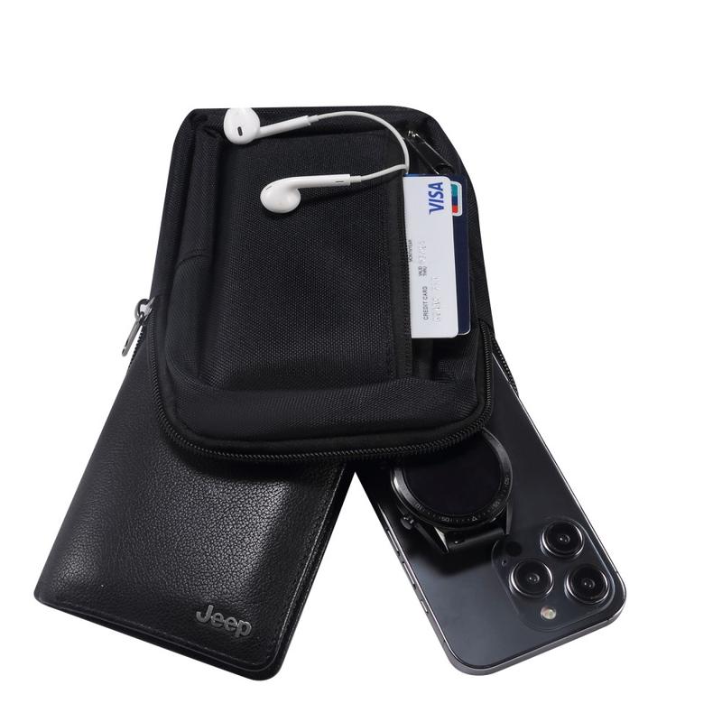 Perfekt for reiser, fotturer eller daglig pendling, med praktisk tilgang til telefonen og ekstra oppbevaringsplass for småting.