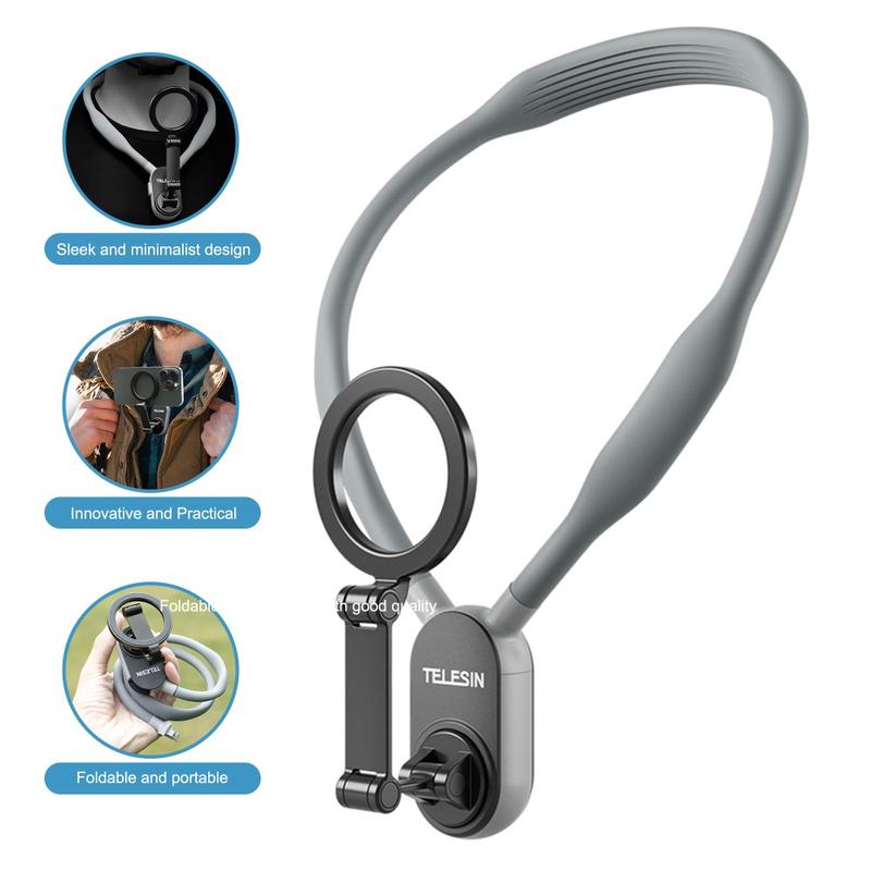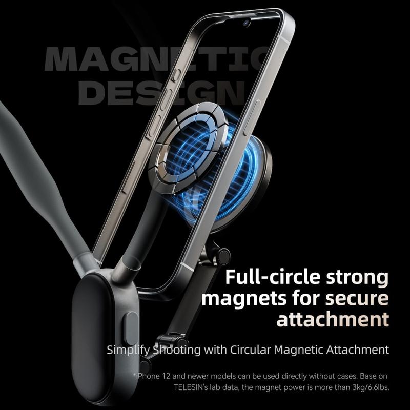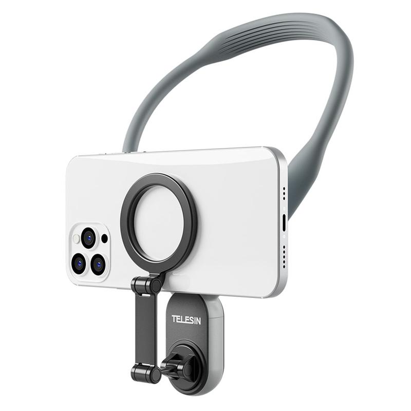 TELESIN MNM-001 for iPhone 12 / 13 / 14 / 15/ 16 silikonhalsfeste magnetisk selfie-stang for telefon - grå
