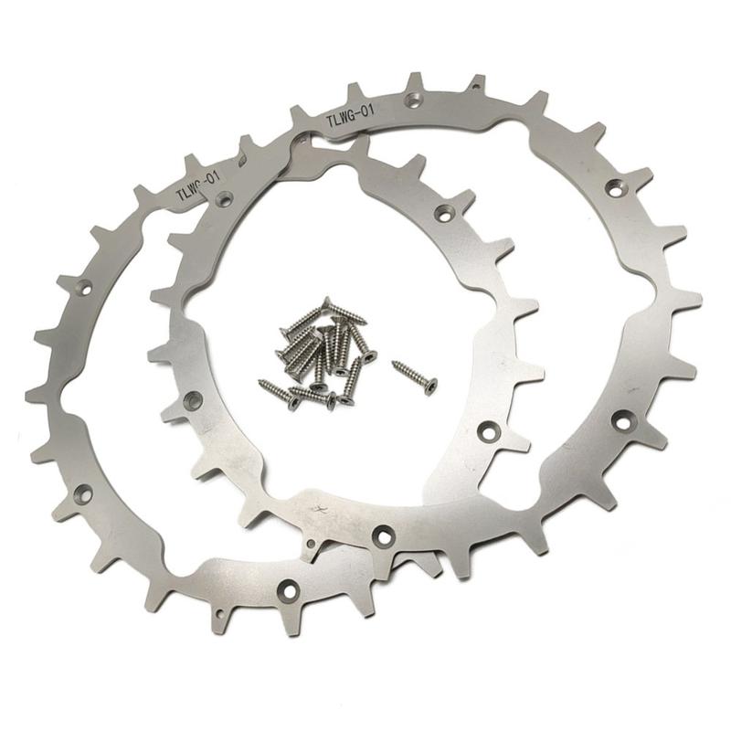 Enkel å montere, bare sentrer den rustfrie stålspissen på hjulet og fest den med de medfølgende skruene