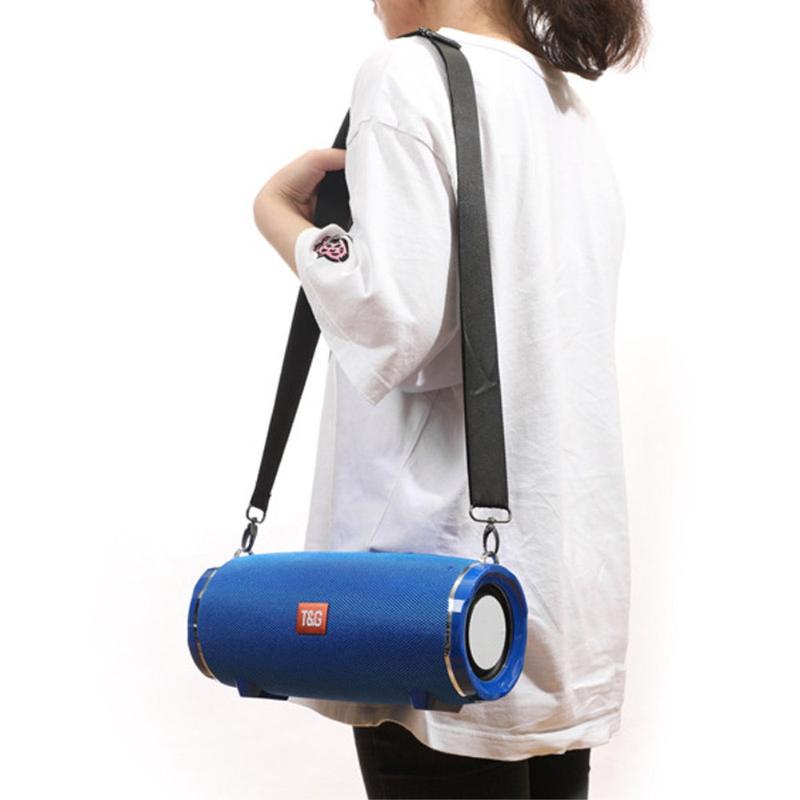 T&G TG187 bærbar trådløs musikkhøyttaler utendørs vanntett Bluetooth FM TF bass stereo subwoofer med skulderstropp (CE-sertifisert)
