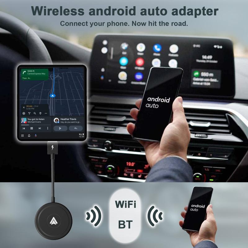 Android Wireless Auto Adapter er egnet for biler med kablet Android Auto og trenger bare å kobles til via bilens USB-port eller TYPE C-kommunikasjon. Føreren kan berøre bilens kontrollpanel og synkronisere kart på nettet, stemmeassistenten Google, telefonsamtaler, musikk osv. fra mobiltelefonen til bilen, akkurat som om han eller hun berører mobiltelefonen, og styre mobiltelefonens funksjoner via bilens kontrollpanel.