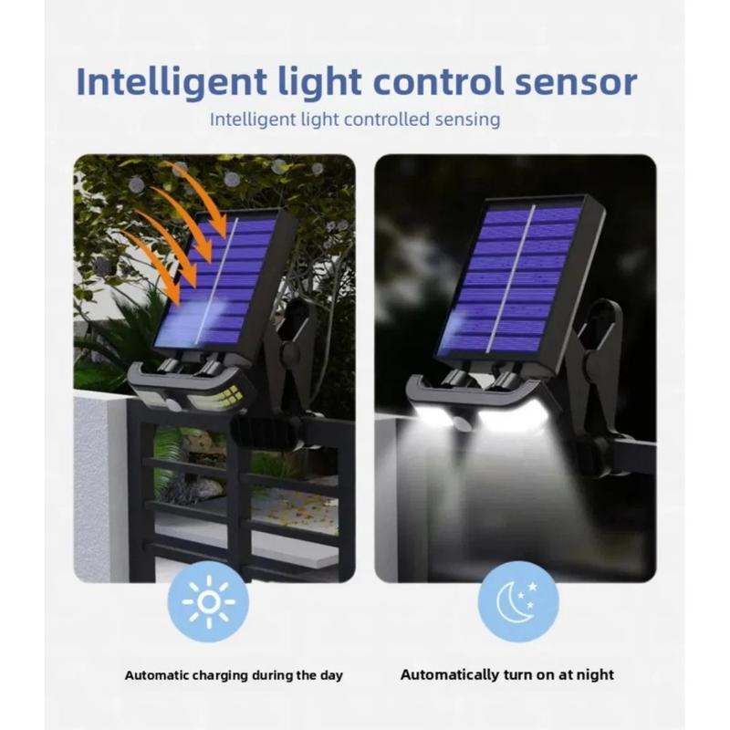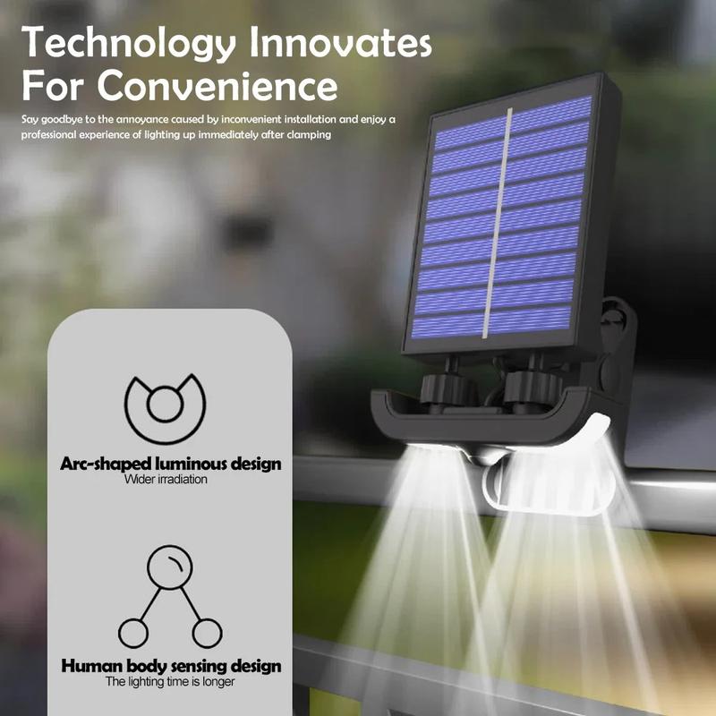 TJ-105 40-LED solcellebevegelseslys med klips - 600 lux, 3-modussensor og USB-hurtigladbar utendørslampe