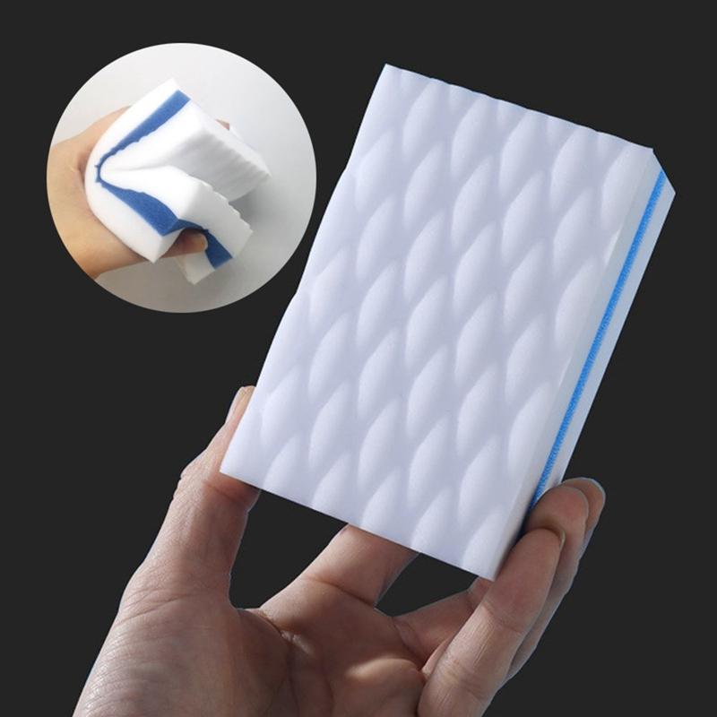 Disse rengjøringssvampene er laget av melamin av høy kvalitet og er designet for å motstå deformasjon og beholde formen ved regelmessig bruk. Materialet er luktfritt og giftfritt, noe som gjør det til et praktisk valg for daglig rengjøring rundt matlagingsområder og andre overflater som brukes ofte.