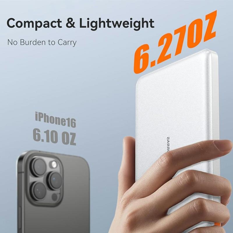 Skyv høykapasitets backup ned i enhver jakkelomme. Dette TORRAS-batteriet veier bare 0,18 kg og er 1,5 cm tynt, og lader to enheter samtidig med 22,5 W utgangseffekt, mens den vevde snorkabelen festes rett i en USB-C-port - ingen ekstra ledninger å glemme.
