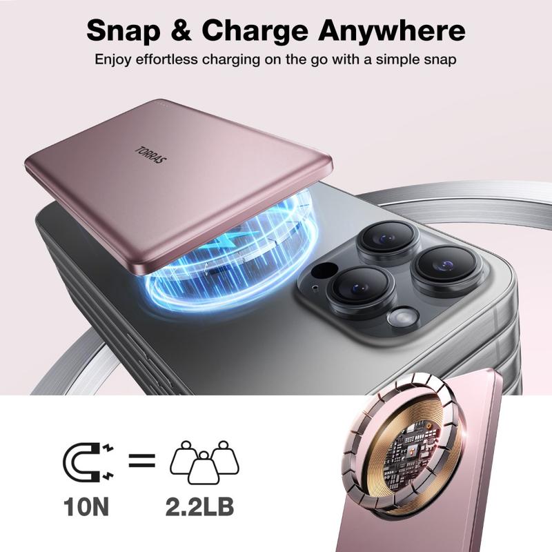Torras MiniMag Pocket-Thin MagSafe Powerbank 5000mAh - Power Delivery 3.0, USB-C-port
