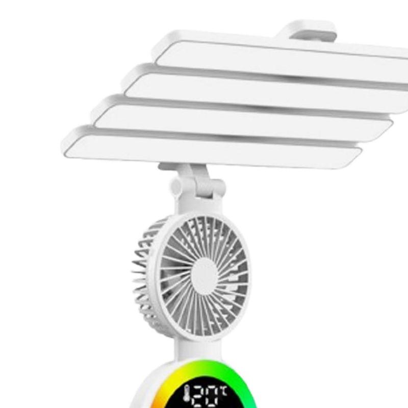 - Alt-i-ett-design: Kombinerer lampe, klokke, vifte og pennholder i én kompakt enhet, slik at du sparer plass på skrivebordet eller nattbordet.