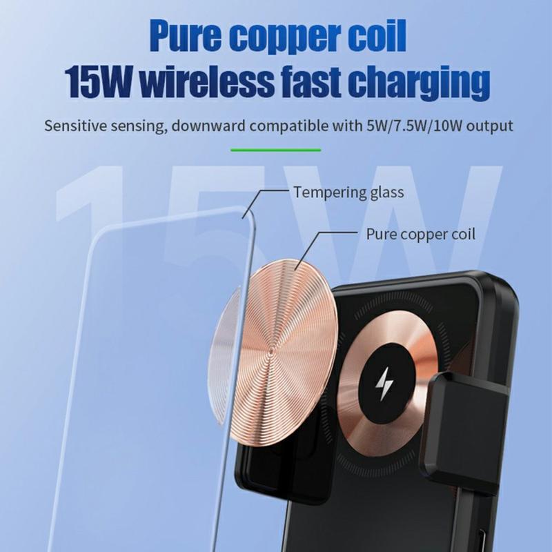 YR-1 3-i-1 trådløs strømbank er ideell for deg som er ute etter en multifunksjonell enhet som kan lade, holde telefonen og brukes til fotografering. Batteriet har høy kapasitet og rask lading, noe som gjør den til et pålitelig tilbehør til hverdagsbruk og på reise.