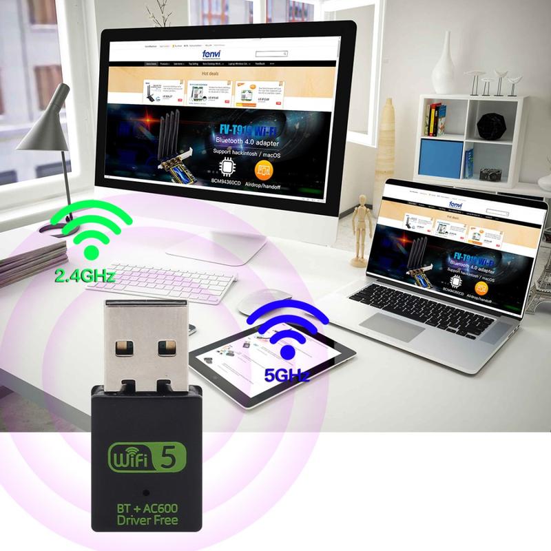 Trådløs USB WiFi-dongle / Bluetooth-adapter for PC, bærbar PC - 600 Mbps, Dual Band 2,4 GHz/5,8 GHz, Bluetooth 4.2