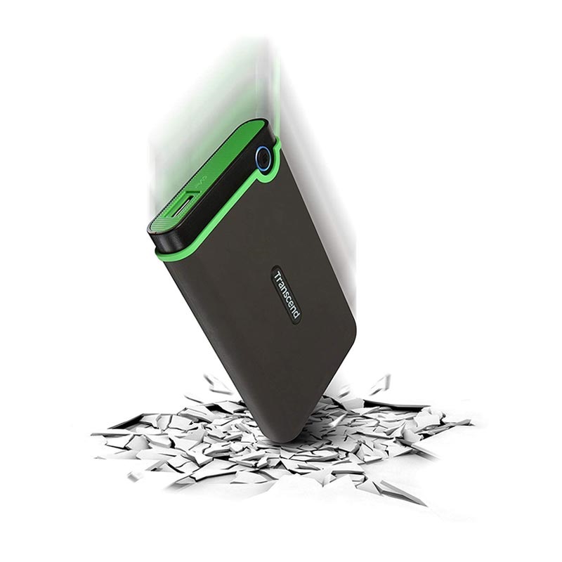 Transcend StoreJet 25M3 holder dataene dine trygge selv om du mister den på et hardt underlag.
