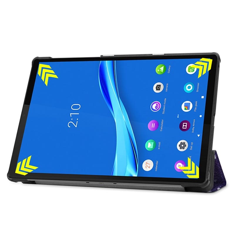 Et veldig praktisk deksel til Lenovo Tab M10 FHD Plus fordi den har en sammenleggbar front som gjør det mulig å plassere nettbrettet i en utmerket posisjon og forbedrer bruken av nettbrettet. Bare sett din Lenovo Tab M10 FHD Plus i en praktisk posisjon og se på filmer eller surf på nettet enklere enn før.