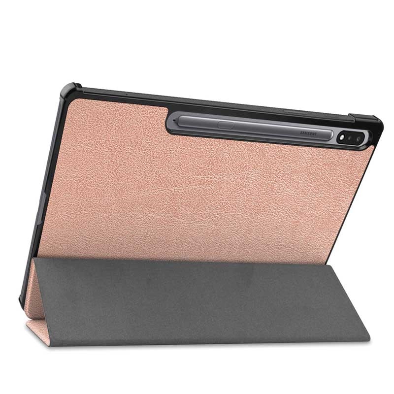 Få et perfekt utseende og god følelse i hånden din med den nye tri-fold folio-etuiet til Samsung Galaxy Tab S7+, Galaxy Tab S8+. Tynt og lett folio-etui gjør det mulig problemfri drift og flott skjermvisning. Fire hjørner beskytter din Samsung Galaxy Tab S7+, Galaxy Tab S8+ mot riper og fall.