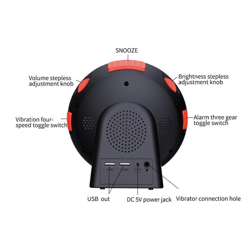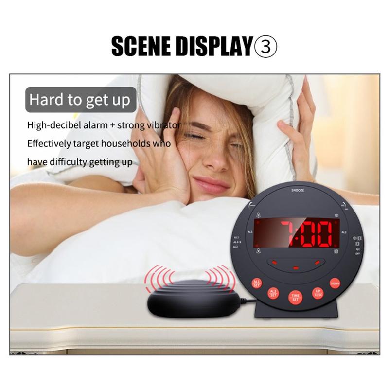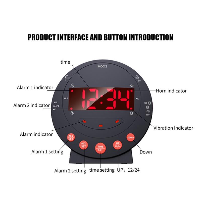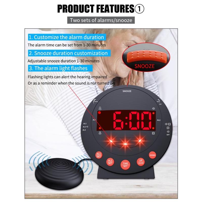 TS-BC600 Høyt vibrerende vekkerklokke med 12/24 timers display for døve, hørselshemmede og eldre - 3 x AAA-batterier (ikke inkludert)