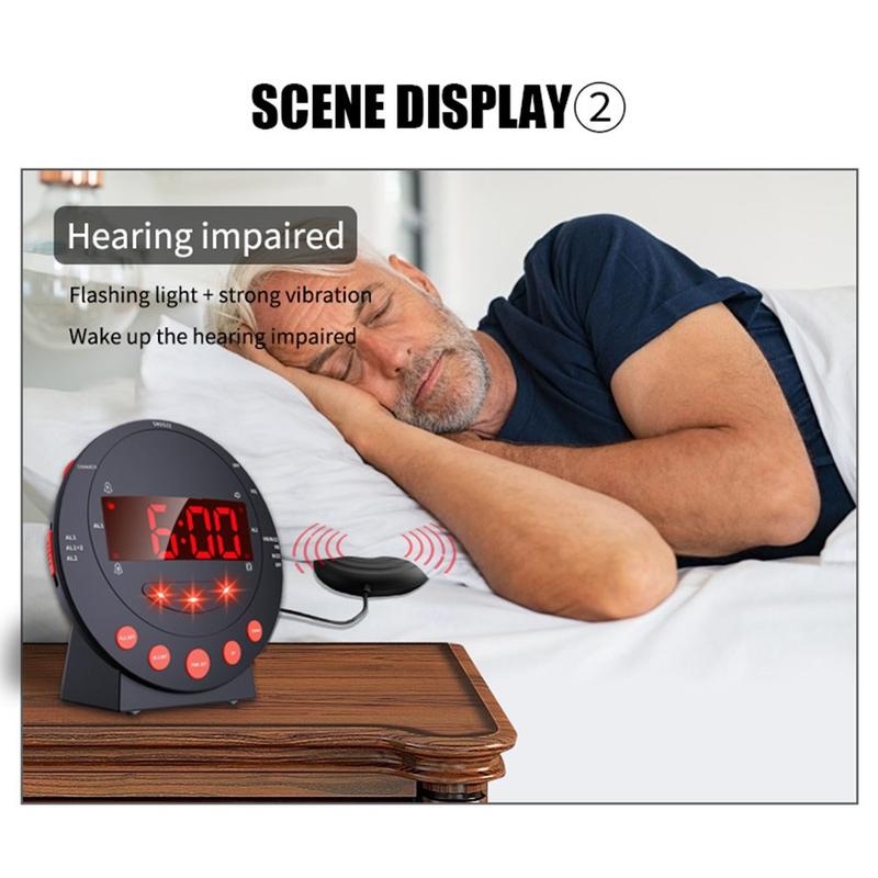 - Personer som sover dypt: Sterk vibrasjonsfunksjon forhindrer forsovelse på travle morgener