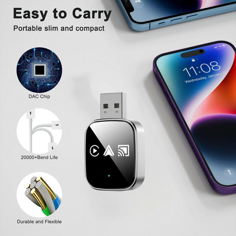 Trådløse CarPlay- og Android Auto-adaptere bruker vanligvis Bluetooth for innledende paring og Wi-Fi for dataforbindelse med høy båndbredde, og det er derfor dual-band Wi-Fi kan forbedre stabiliteten. Mange fabrikk-systemer støtter full berøringsskjerm og rattkontroller gjennom adapteren, slik at kjøreopplevelsen forblir kjent – bare uten kabelen.