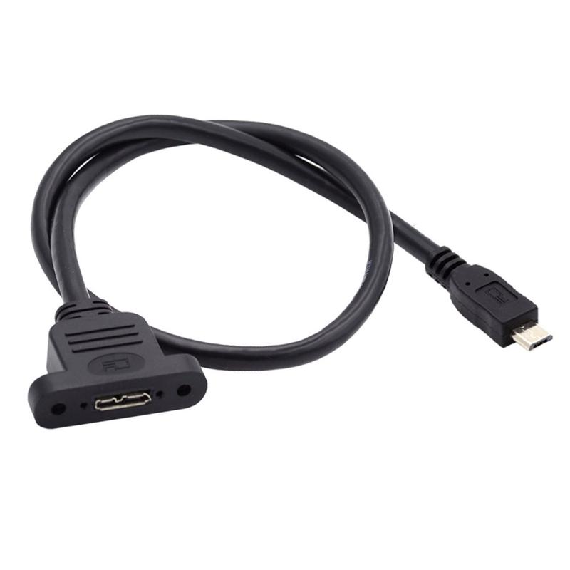 U3-012-MM 50 cm Micro 3.0 Type-B-hunn til Micro USB 2.0 5-pinners hannforlengerkabel 480 Mbps med skruemontert skjøteledning