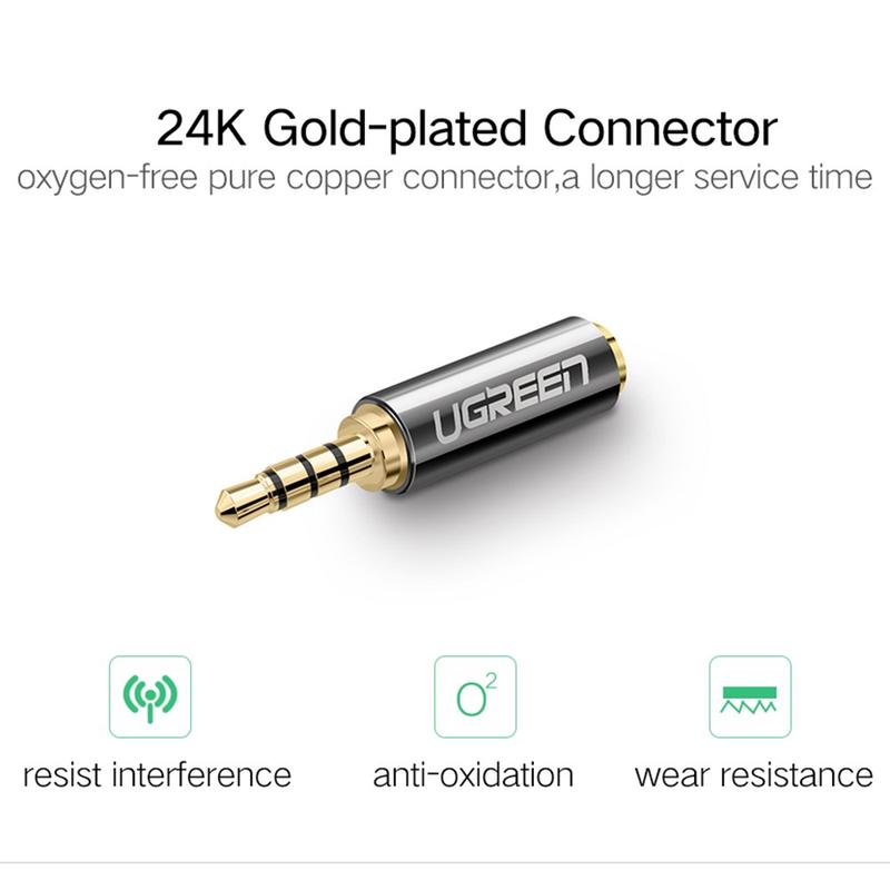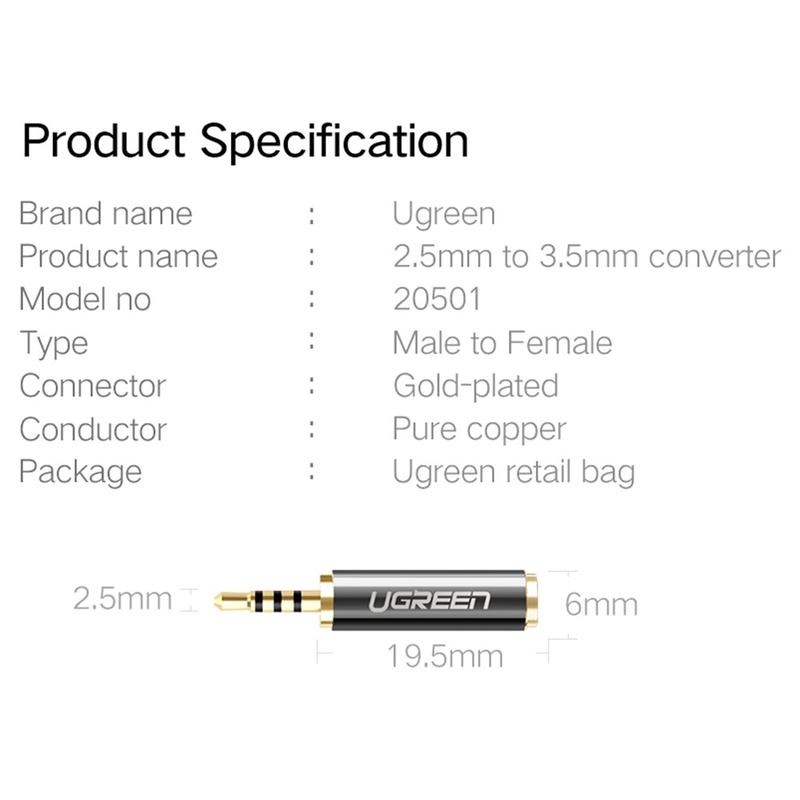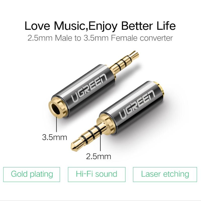 Ugreen 2.5mm hann til 3.5mm hunn stereolydadapter med gullbelagte kontakter