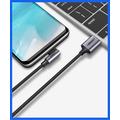 Ugreen vinkelkabel USB - USB Type C 2m 3A er en USB-kabel med en USB Type C-plugg som er bøyd i 90 graders vinkel, noe som gjør den perfekt for bruk på trange steder eller når du holder telefonen horisontalt mens du spiller. Kabelen er designet for hurtiglading med Quick Charge 3.0-teknologi, og sidepluggen reduserer risikoen for å skade kabelen og øker komforten under bruk. Denne kabelen er laget av TPE av høy kvalitet og plassert i en sterk nylonflette og fiskesnøre, noe som gjør den slitesterk og floker seg ikke. Strømstyrken på 3 A og en fortinnet kobbertråd sørger for rask og sikker lading, og kabelen er kompatibel med alle enheter med USB Type C-port.