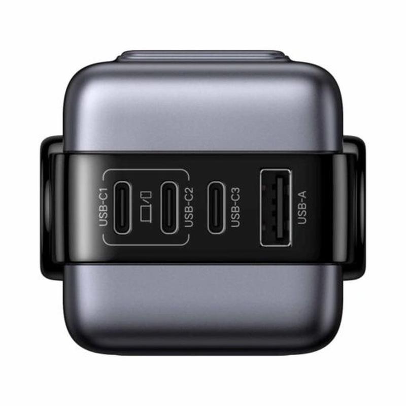 - Fire ladeporter (3× USB-C + 1× USB-A) for å gi strøm til opptil fire enheter samtidig