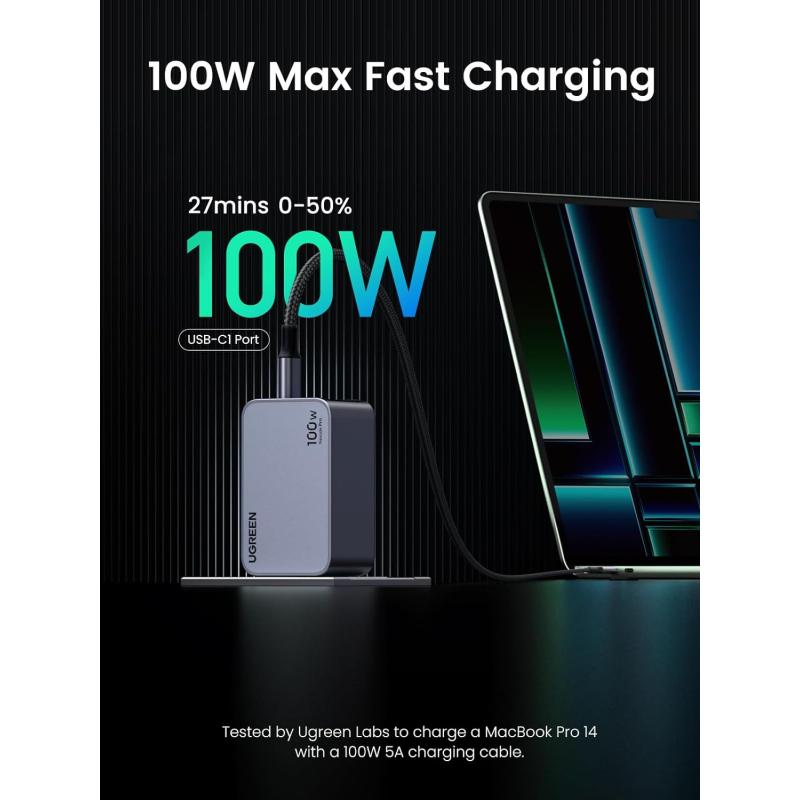 Enten du lader smarttelefonen, nettbrettet eller den bærbare datamaskinen, er UGREEN 100W Nexode Pro kompatibel med en rekke hurtigladeprotokoller, inkludert PD, QC, SCP, AFC, PPS og Samsungs 45 W Super Fast Charging 2.0. Med tre porter kan du lade flere enheter samtidig, og den medfølgende USB-C-kabelen sørger for en stabil og rask tilkobling.