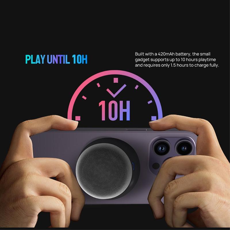 Det innebygde oppladbare batteriet på 420 mAh garanterer lang spilletid, og høyttaleren kan lades med en Type-C-kabel.