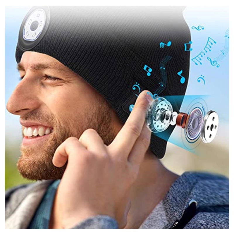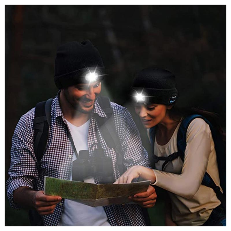 Forbered deg på vinteraktiviteter med denne fantastiske strikkede hatten. Denne musikkhatten er laget av supertynt materiale som har elastisitet og gir utmerket komfort. Denne kule hatten har innebygde stereohodetelefoner og en mikrofon som lar deg høre på musikk under aktivitetene dine. Den leveres med en håndfri LED lampe som er oppladbar og avtakbar. Du kan lade den med powerbank, billader, datamaskiner osv. Du trenger ganske enkelt ikke bruke penger på å kjøpe batterier! Hatten passer til mange aktiviteter: løping, jogging, camping, sykling, treningsstudio osv. Med denne Bluetooth-hatten kan du ta et trygt løp i mørket og nyte musikk!