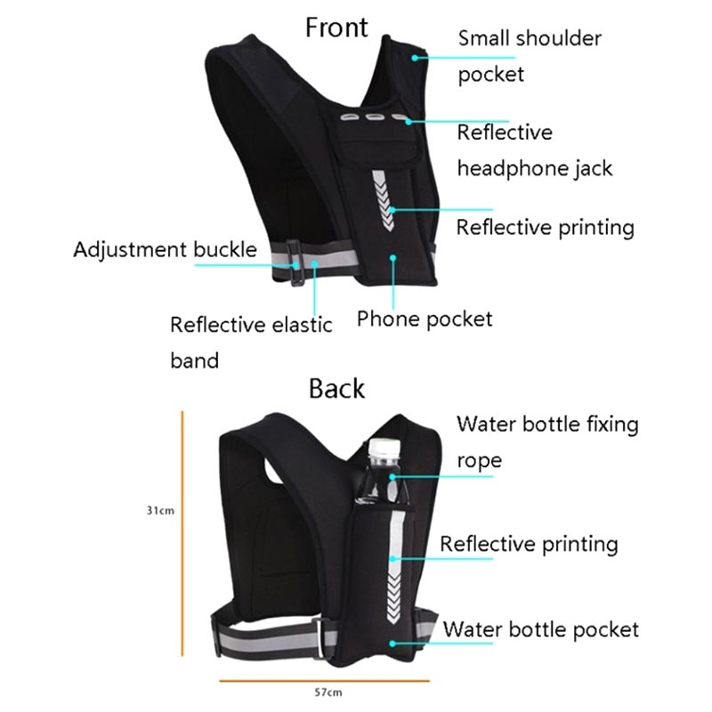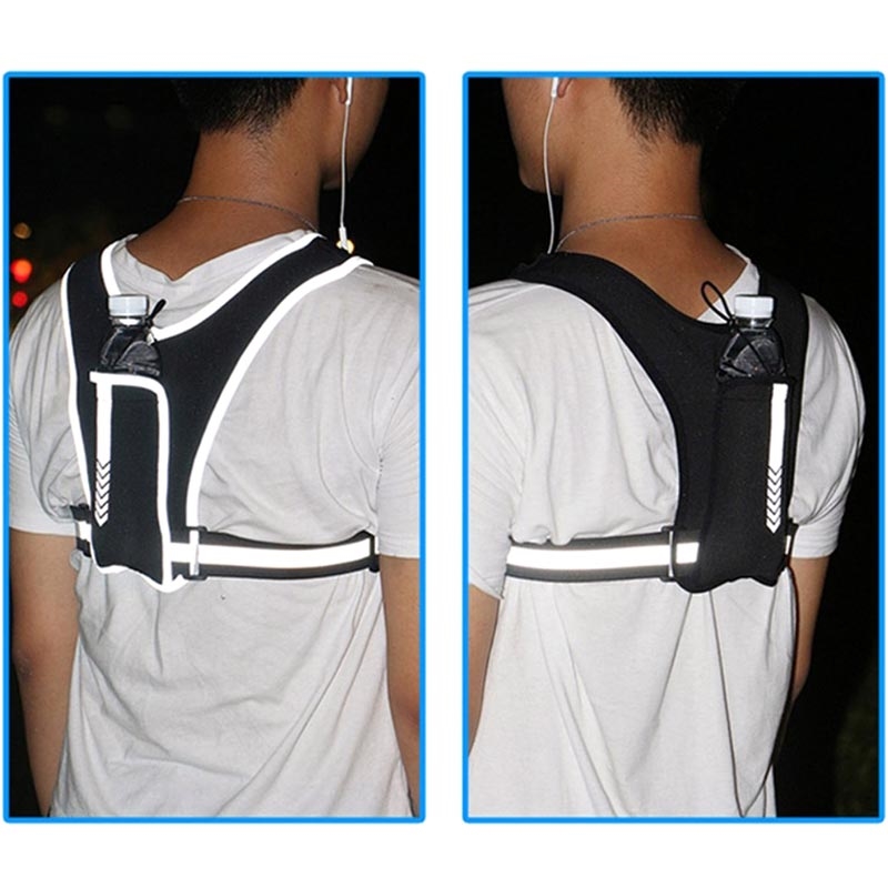 - Den har en justerbar stropp for en mer komfortabel passform, også reflekser som gjør deg lett synlig under dårlige lysforhold