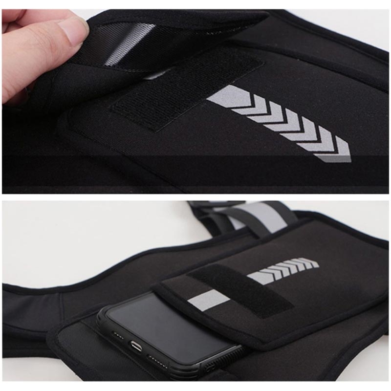 allsidige sekken tilbyr rikelig med lagringsplass for mobiltelefonen, nøkler, lommebok og andre nødvendigheter, mens du fokuserer på aktiviteten din. Den har reflekser som gjør deg lett merkbar under dårlige lysforhold. Det lette og pustende materialet legger til den generelle komforten, og forhindrer overoppheting og ubehag under lengre løpeturer eller intense treningsøkter.