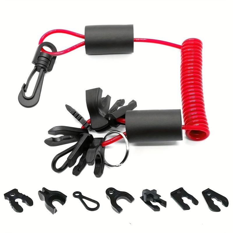 Hold deg tryggere på vannet med denne snoren til motorstopperen for utenbordsmotorer, som er utviklet for båter, vannscootere og andre vannscootere. Den 1.6m lange TPU-sikkerhetssnoren kobler deg til motorstoppbryteren, slik at motoren stopper raskt hvis du faller over bord eller beveger deg bort fra kontrollene. Den er laget av slitesterk termoplastisk polyuretan (TPU) og har god elastisitet og slitestyrke for maritim bruk. Den knallrøde fargen gjør den mer synlig i nødsituasjoner, og den svingbare kroken bidrar til å forhindre sammenfiltring og holder festet sikkert. Settet inneholder 7 nødstoppknapper for bred kompatibilitet og 2 flytende bobler som gjør snoren lett å få øye på i vannoverflaten.