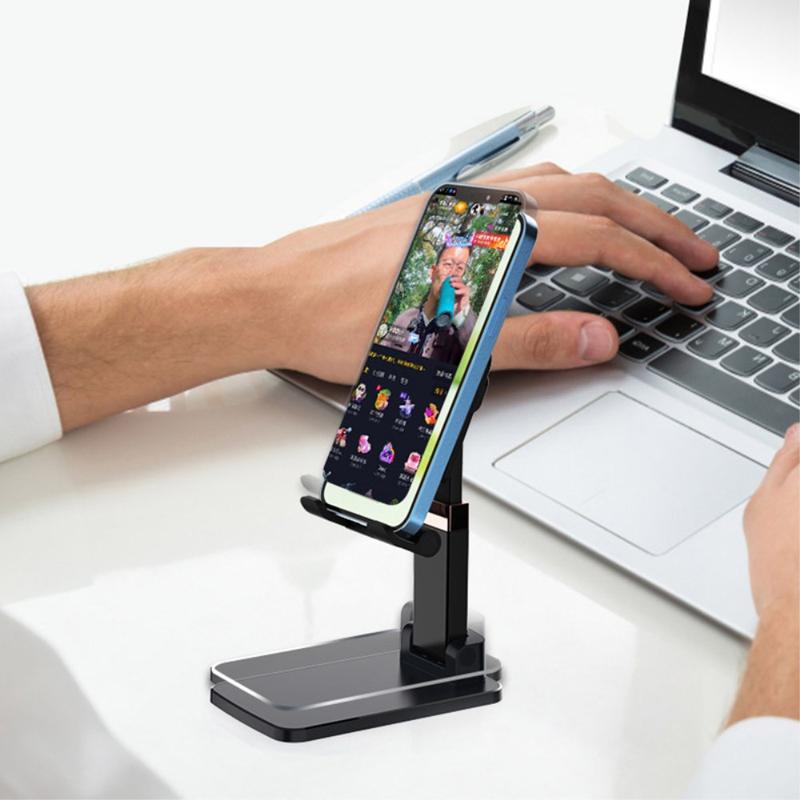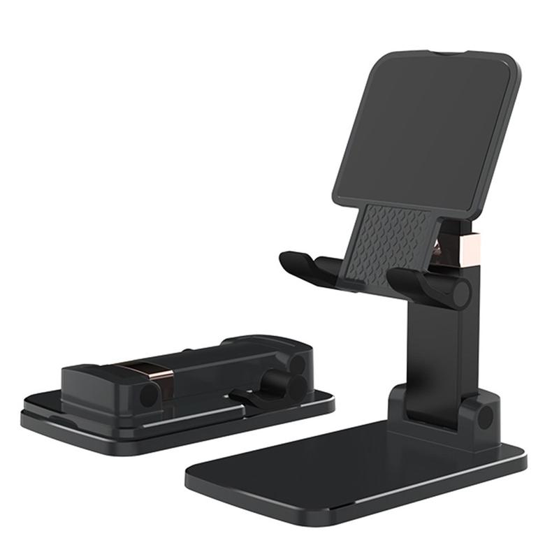Stabilitet og beskyttelse: Det sammenleggbare telefonstativet er laget av førsteklasses PC+ABS, galvaniseringsbehandling, med glatte kanter, som beskytter enheten din mot riper