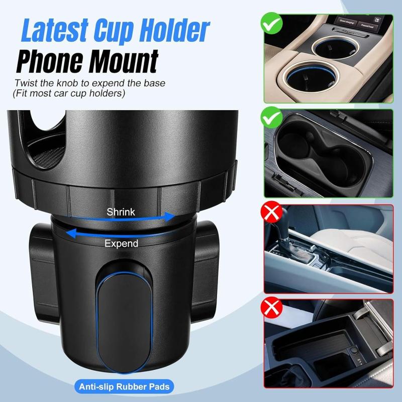 Holderen har flere justeringspunkter og en teleskopisk nakke, slik at du kan stille inn telefonen i en behagelig høyde og vinkel for bedre sikt under kjøring. Den utvidbare koppholderbasen har en sklisikker struktur som passer sikkert i mange bilkoppholdere, noe som bidrar til å holde holderen stabil selv på ujevne veier.