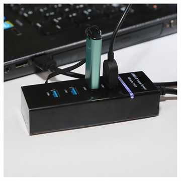 - USB 3.0-hub støtter en dataoverføringshastighet på opptil 5 Gbps, som er 10 ganger raskere enn USB 2.0