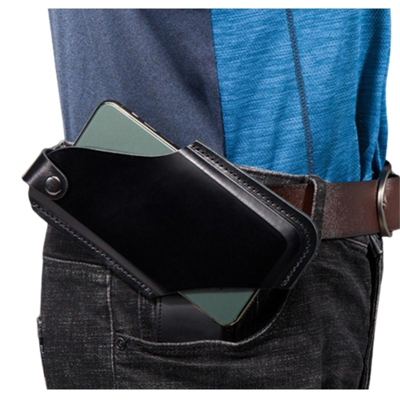 Universell Belteveske Lær Deksel med Belteløkke - S - Svart
