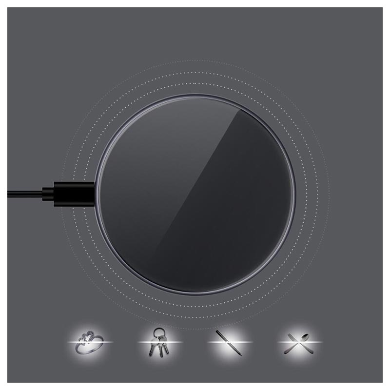 Gjenkjenning av ukjente objekter. Den trådløse ladeputen oppdager umiddelbart ukjente gjenstander som nøkler, penner, smykker osv., Og stopper ladeprosessen for å unngå overoppheting og for å holde de dyre telefonene dine trygge.