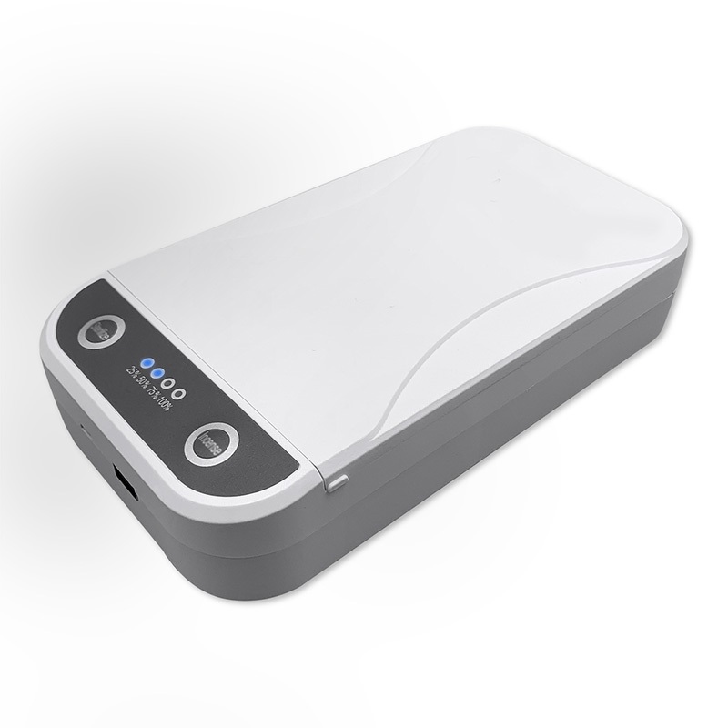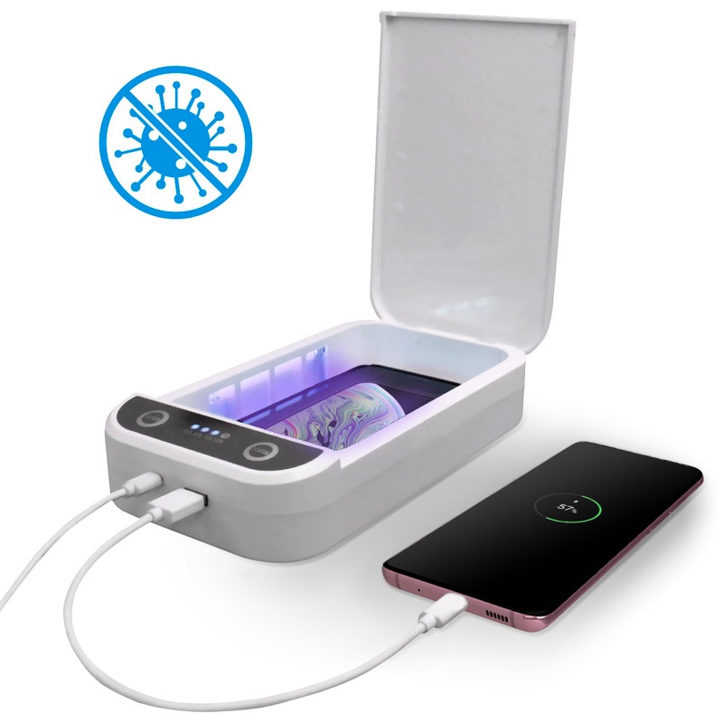 Den reduserer antall bakterier, og bakterier på gjenstander til et minimum. Den er perfekt for smarttelefoner, klokker, smykker eller mindre klær. Det er veldig enkelt å bruke - bare trykk på en av de to lett tilgjengelige knappene, så er du klar til å gå.