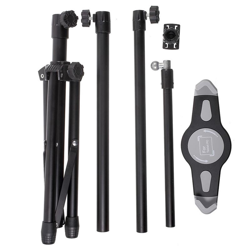 Stativet har en maksimal høyde på rundt 140 cm, med 4 seksjonsrør og et roterende hode, noe som gir enkel høyde og synsvinkeljusteringer. Det kan holdenettbretter som er innenfor 18.2-29 cm i bredde og det er flott for daglige aktiviteter. Det er et flott stativ til iPad, Samsung og andre nettbretter som varierer fra 7 til 11" i skjermstørrelse.