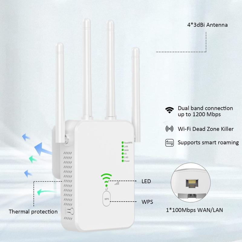 - WiFi-forlenger og -ruter med to bånd og en hastighet på opptil 1200 Mbps